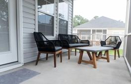 Imagine living in this luxurious, modern home that was built in 2021. It's a one-level home with a prime corner location, so you'll have plenty of natural light throughout the house. The back of the house has a flexible space that can be used as a back screened-in porch. It opens onto a deck with a charming outdoor patio feel, perfect for cozy evenings under twinkling patio lights. Whether you're roasting marshmallows or relaxing with friends, this outdoor space is sure to impress. The open floor plan features a beautiful chef's kitchen with sleek finishes that flow seamlessly into the dining room and family room. This is ideal for both everyday living and entertaining. The spacious primary master bedroom suite awaits, with his-and-hers sinks, a separate shower, a walk-in closet, and a luxurious en-suite bathroom for your comfort. There's also a second full bathroom shower/tub combination between the second and third bedrooms. This house has an in-unit laundry area and a 1-car garage, so it's perfectly catered to your modern lifestyle and ready for you to move in! Make this modern and functional house your peaceful, comfortable retreat! Schedule your private showing today! Renter is responsible for electric, water. Last month's rent due at signing. No smoking allowed. Not pets are allowed.