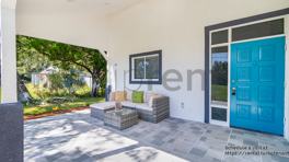 Nestled in the serene setting of Cocoa, FL, this charming property at 6508 June Drive offers a perfect blend of modern comfort and natural beauty. The exterior boasts a welcoming porch area, surrounded by lush greenery and mature trees, providing a tranquil retreat. The vibrant blue door adds a pop of color and character, inviting you into the spacious interior. Inside, the open-concept layout showcases a beautifully updated kitchen with sleek white cabinetry, stainless steel appliances, and ample counter space, making it a chef's delight. The living area is accentuated by warm wood accents and high ceilings, creating an inviting atmosphere for relaxation and entertainment.
