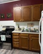• Eat in kitchen with full size refrigerator and gas oven/stove.