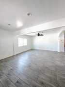 The primary suite features a private bathroom, while updated flooring and windows bring a bright, modern touch throughout. In-home washer/dryer hookups add everyday ease, and driveway parking for two vehicles is included (no garage).