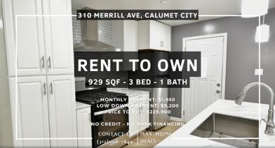 Spacious 3-bedroom, 1-bath Calumet City home with basement and garage. Move in without dealing with banks—approval is easy. Monthly payments of $1,950, purchase price is $229,900, and a $9,200 down payment is required.