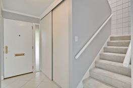 Main level includes a spacious carpeted living room and half bath. Two sliding glass doors add plenty of natural light and lead out to a private enclosed patio area. Extra patio off the kitchen eating nook.