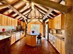 Inside, enjoy an inviting expansive living room with vaulted ceilings, mini-split A/C, and two fireplaces (one gas, one wood). The chef’s kitchen offers stainless steel appliances, a gas stove, large island, and an additional butler’s sink—perfect for entertaining.