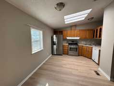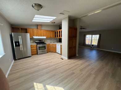 Step inside and be greeted by a spacious layout with skylight and vaulted ceilings. The kitchen features a gas stove top, dishwasher, and ample counter space to whip up your favorite meals. Enjoy the convenience of in-unit laundry with a washer and dryer included, along with other essential amenities like the large outdoor patio and fenced in yard.