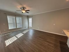 Step inside to an open floor plan perfect for entertaining, complete with a large kitchen island, granite countertops, and 42" upper cabinets for plenty of storage. The stainless steel appliances, including a refrigerator, make this kitchen move-in ready. Enjoy the durable vinyl plank flooring throughout the first floor, bathrooms, and laundry room.