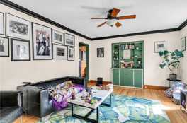 This home features beautiful hardwood floors and natural woodwork, and spacious bedrooms.