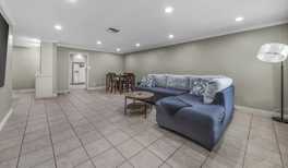 Welcome to this charming single-story townhome that truly feels like a standalone home! Located at the end of a quiet block in the desirable Palm Valley area, this property features a spacious side yard with mature oak trees, a fenced-in courtyard, and a rear-entry two-car garage all adding to its curb appeal and privacy. Inside, natural light fills the expansive open-concept living area, creating an inviting atmosphere for entertaining friends or enjoying cozy nights in. The kitchen is bright and cheerful, with tiled backsplash and plenty a room for a breakfast table. In addition to three comfortable bedrooms, the home includes an enclosed patio transformed into a sunroom—cooled by a window unit and ideal for a playroom, office, craft room, or cozy retreat. The primary suite features a walk-in closet and a renovated bathroom with a modern vanity and walk-in shower tile and wood-look flooring, giving you the best of both comfort and durability. The home did not flood in March of 2025