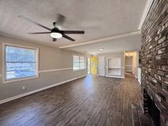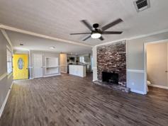Inside, youll find a bright living area with durable wood-style flooring and a decorative brick fireplace. The kitchen features updated cabinetry, stainless-steel appliances, and a gas range, while the dining area provides plenty of room to gather. The bedrooms are spacious with natural light throughout, and the bathrooms include modern fixtures and clean, updated finishes.