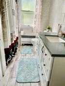 Enjoy the comfort of heated bathroom floors during the colder months. Refrigerator, washer, and dryer included as is.