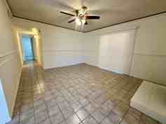 2-bedroom, 1.5 bathroom home now available. Upon entry, the living room is to the right and features a fireplace with access to the covered patio. To the left is the kitchen and dining area. Down the hall, the bathroom is on the left, the first bedroom is on the right, and the primary bedroom is at the end of the hall. Each bedroom has its own sink area and shares the shower/tub combination. *Online apps only, please submit all required documents at time of application** **$100,000 Liability to Landlord Insurance Policy Required**