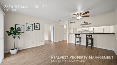 This 700 sq ft first-floor condo offers a convenient location near the Medical Center and NRG Stadium in Houston, making it a practical choice for those needing easy access to these areas. This cozy unit features an open-concept living area, perfect for relaxation or entertaining. Enjoy the convenience of a spacious bedroom with a large closet, and a well-appointed bathroom. The kitchen has plenty of cabinet and counter space for cooking. This condo features fresh paint, new solid surface flooring, a new microwave, and a new oven/range. Refrigerator, washer and dryer included