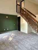 A really cute Duplex property on a cul-de-sac, with a 1 car attached garage. The main floor is the livingroom with a vaulted ceiling, and kitchen. Upstairs are two bedrooms and a full bath.