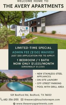 1 dormitorio / 1 bañoAhora solo $1,025/mes (¡Originalmente $1,225!)