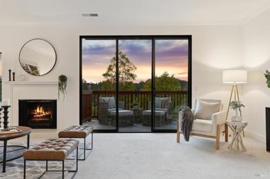 Welcome to a bright and inviting two-level townhome with sweeping hillside views, including Mount Burdell. The main level features an open floor plan with a spacious living room centered by a cozy fireplace, large windows, and access to a private deck. The dining area flows seamlessly into the kitchen, complete with ample cabinetry and a cheerful breakfast nook. A half bath and full laundry room add everyday convenience. Upstairs, the primary suite offers a walk-in closet, ensuite bath, and its own private deck to enjoy the views. Two additional bedrooms and a full bath provide flexibility for guests, family, or work-from-home. Fresh paint, updated lighting, and plush carpet enhance the move-in ready feel. Outdoor living is expanded with multiple decks, while a detached garage provides secure parking and storage. Ideally located near Novato shops, dining, and parks, this home blends comfort, function, and picturesque scenery.