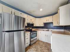 - Kitchen: Modern kitchen featuring: Double Sink,Plenty of cabinet storage,Stainless steel appliances,Dining room space