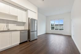 The modern kitchen comes fully equipped with stainless-steel appliances including a fridge, stove, oven, microwave, and dishwasher. Enjoy in-suite laundry, and thoughtful design throughout. One parking stall and a storage locker are included, with visitor parking available.