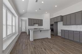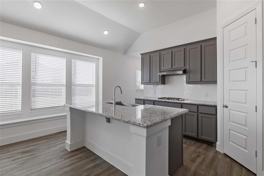 2022 Build by Highland Homes - Ready Now! Charming one-story floorplan on oversized lot! Beautiful interior with stone fireplace, upgraded kitchen with stainless steel farmhouse sink, painted cabinets, gas stove top, pots and pans drawers, built in oven and microwave and subway backsplash. Volume 11 foot interior ceilings in main parts of home and 8 foot doors throughout, window seat in primary suite, double vanity in primary bath and large closet. This home is bright and has lots of natural light. Includes window blinds. All of this is packed into a very energy efficient home. Master planned community includes pool, walking trails, and soccer fields!