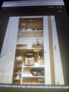 Kitchenette with 2 burner stove, air fryer, sink and stocked with all necessary supplies