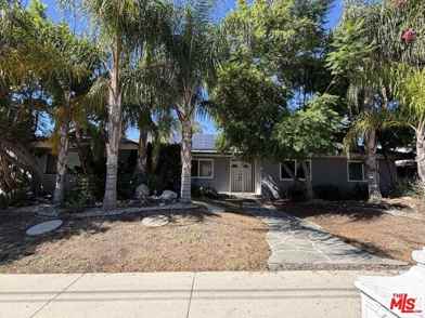 Sprawling Ranch-Style Home in Prime Porter Ranch. Welcome to this spacious home located in a highly sought-after Porter Ranch neighborhood. Offering 5 bedrooms, 3 bathrooms, and approximately 2,450 sq. ft. of living space on a flat 10,200 sq. ft. lot, this property perfectly combines comfort, functionality, and charm. Enter through double front doors into a tiled foyer that opens to a formal dining room and living room featuring smooth ceilings, recessed lighting, and a wood-burning fireplace. The large galley kitchen with a dining area boasts stainless steel appliances, granite countertops, and recessed lighting. The split floor plan offers flexibility, with four bedrooms on one side and a family room (currently used as a fifth bedroom) on the other. The primary suite includes dual wardrobe closets, a ceiling fan, and direct access to an enclosed patio. The remodeled primary bath showcases a glass-enclosed shower and travertine vanity. A light-filled enclosed patio at the rear adds over 600 sq. ft. of additional living space and opens to a beautiful backyard retreat. The pool features a Baja shelf and Pebble Tec finish, surrounded by a stone-accented patio and tropical palm trees, perfect for relaxing or entertaining. Additional highlights include: Double-wide RV access. Solar panels with battery backup. Vinyl windows throughout. Smooth ceilings, and tile flooring. This home truly captures the best of California indoor-outdoor living in a prime Porter Ranch location.