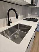 Modern 1-bedroom condo featuring a walk-in closet and large flex room (no closet) perfect for a 2nd bedroom, office, or guest space. This 721 sq. ft. south-facing home offers an open layout with quartz countertops, stainless steel appliances, full-size washer/dryer, and a private extra-long patio overlooking the park and playground. Bright, quiet, and wheelchair accessible, with high-end finishes and great kitchen storage. Building amenities include a fitness centre, lounge, co-work studio, outdoor courtyard, shared green space, and dog/bike wash room. Walk to Rocky Point Park, Suter Brook Village, Brewers Row, schools, shops, and Moody Centre SkyTrain & West Coast Express. Includes 1 parking, 1 locker, gas & water; tenant pays hydro. Pets considered with deposit.
