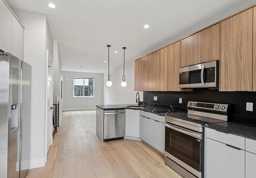 Step inside to find hardwood floors, recessed lighting, and elegant iron railings that add a touch of sophistication throughout. The gourmet kitchen is a chef's dream, featuring stainless steel appliances, 48-inch cabinets, and sleek finishes that bring both beauty and function together. Each bedroom is nicely sized, with walk-in closets for plenty of storage. The master bedroom even includes its own private deck, offering the perfect place to relax.