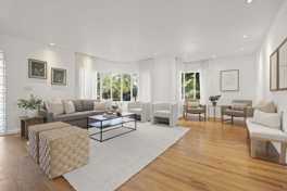 With an enviable location at the upper end of Canada St just blocks from downtown Ojai, this one of a kind 4 bedroom 4 bath Art Deco home features curved lines with a Mid Century feel. Upon entering you are greeted with ample windows allowing natural light to filter in. A gourmet kitchen opens up to the generous living room and dining room area equipped with a cozy fireplace and french doors leading out to the spacious backyard. Upstairs you will find a separate guest wing with its own private rooftop patio to enjoy the mountain views. Situated on . 38 acres with decks for lounging, fruit trees, a fountain and mature landscaping. Additional features include a detached 2 car garage and an outdoor BBQ area. A true retreat in the heart of Ojai!