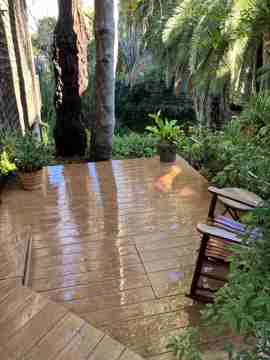 Unique and spacious 2br with open beam ceilings, small private yard and a deck which hangs over the creek bank. Quiet and private. Walking distance to downtown. Lots of light. Both bathrooms recently remodeled with all new stone countertops and showers, new fixtures, and paint. Wood flooring throughout. Unit has two off street parking spaces, one of which is a carport. (Two houses on property, this is the rear house). Water is paid by landlord. This house has a lot of character and lots of volume in the ceilings. Master Br is large with large bath on the 2nd floor. Laundry hook-ups in closet on 1st floor.