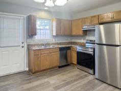 Updated kitchen with ample cabinet space, eat-in dining area, and all brand-new appliances