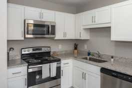 These beautiful apartments feature a stylish gray color scheme throughout, high-quality granite countertops, and matching stainless steel appliances, which include a fridge, stove, dishwasher, and microwave. The bathroom boasts a charming vanity with top-notch plumbing fixtures. Every corner of this home has been thoughtfully designed and meticulously crafted for your comfort.