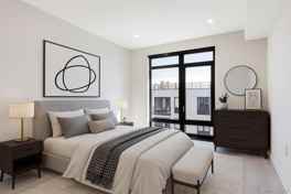 Residence 201 offers 629 square feet of thoughtfully designed one-bedroom living with both southwest and southeast exposures. Floor-to-ceiling windows bathe the home in natural light, while soundproof construction ensures a quiet, peaceful retreat from the city. The open-concept layout features high-end finishes throughout, including a sleek chef's kitchen with stainless steel appliances, a contemporary bathroom with a glass-enclosed shower and illuminated vanity mirror, and a well-proportioned bedroom with generous closet space. Central heating and cooling provide year-round comfort. The building welcomes residents with an elegant lobby featuring video intercom and keyed access. An elevator connects each floor to a beautifully furnished roof deck with panoramic views of the Manhattan skyline, perfect for relaxing or entertaining. Additional conveniences include a laundry room, bike storage, and pet-friendly accommodations. Perfectly located on Broadway in the heart of Astoria, 37-18 Broadway offers immediate access to neighborhood favorites such as Brooklyn Bagel & Coffee Company, Sweet Afton, and Ovelia, as well as multiple grocery options including Trade Fair Supermarket. The N/W trains at Broadway Station are just a few blocks away, offering a quick and easy commute to Manhattan while allowing you to enjoy Astoria's vibrant dining scene, boutique shopping, and charming tree-lined streets.