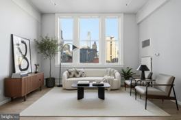 Step into this spacious two-bedroom, two-bathroom loft-style condo, ideally located at the intersection of 13th and Arch Streets within the historic Arch Street Exchange building, originally constructed by The Bell Telephone Company in 1905. Seamlessly blending the charm of its heritage with contemporary elegance, this unit features newly upgraded hardwood floors and the backdrop of soaring 15-foot high ceilings. Upon entry, you'll be greeted by access to the perfect work from home loft bedroom and hallway full bath. Further down the hall, expansive windows flood the space with abundant natural light, accentuating the open floor plan, perfect for both entertaining and relaxation. The modern kitchen is a culinary enthusiast's dream, equipped with stainless steel appliances with a gas range and granite countertops. The primary suite, a private retreat, includes double closets and a modern tiled large shower. Additional storage space is conveniently located on the same floor. Situated just one block away from the Reading Terminal, Trader Joe's, and a variety of culinary delights on 13th Street, such as Barbuzzo, Sampan, and El Vez, this location offers unparalleled convenience. The entrance to the Rail Park, Mom's Organic Market, and numerous shopping destinations are also within close proximity. For those who rely on public transportation, the Market-Frankford Line and Regional Rail Lines are easily accessible, with three parking garages located within a block's radius. The pet-friendly building ensures security with a robust access system, two elevators, and welcomes dogs. Embrace the epitome of city living in this distinctive loft, where the rich history of the building harmonizes with modern luxury living. Please note that a minimum 12-month lease is required. Experience the captivating allure of 1228 Arch Street and transform it into your urban sanctuary.