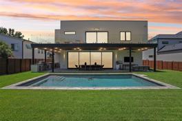 Welcome to 2010 Meadowridge Drive, a stunning contemporary home that blends modern luxury with breathtaking views of downtown Austin. Built in 2024, this residence features six spacious bedrooms and three and a half bathrooms, designed with an open-concept floor plan where the kitchen and living areas flow seamlessly together. The chef’s kitchen is a dream, showcasing a large island, Sub-Zero and Wolf appliances, and custom fixtures and finishes throughout. The luxury master suite offers a serene retreat, while every detail of this fully automated smart home reflects thoughtful design and high-end craftsmanship. Step outside to enjoy the ultimate in outdoor living, with a covered patio and outdoor kitchen overlooking a sparkling pool and a balcony that captures the skyline views. With its beautiful drive-up appeal, striking architecture, and indoor-outdoor living at its finest, this home is a rare Austin treasure.