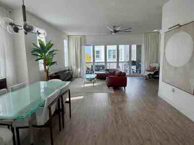 * Open-concept living with 10-ft ceilings & floor-to-ceiling curtains