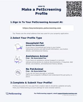 - Profiles for service animals and "No Pet" declarations are free of charge.