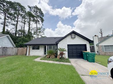 Discover this lovely 3-bedroom, 2-bathroom home ideally located in Fort Walton Beach, close to shopping, dining, and both local military bases. This well-maintained unit offers a 1-car garage plus additional driveway parking for your convenience. As you enter the home you are greeted by a thoughtfully designed split-bedroom floor plan, offering the perfect blend of comfort and privacy. Inside, you’ll find a spacious living room with high ceilings and abundant natural light creating the perfect setting for relaxation or entertaining. The full kitchen features stainless steel appliances, generous counter and cabinet space, and dining area that flows seamlessly into the living area. The primary suite includes a tub/shower combo, while two additional bedrooms provide plenty of space for family, guests, or a home office. A laundry room with washer and dryer (as-is) adds everyday convenience. Step outside to enjoy a fully fenced backyard with an open patio, ideal for outdoor dining or simply unwinding after a long day.