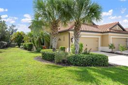GORGEOUS 2 BEDROOM, 2 BATHROOM WITH A LARGE DEN AND 2 CAR GARAGE VILLA WITH A BEAUTIFUL LAKE VIEW LOCATED IN THE HIGHLY SOUGHT AFTER GATED MILANO COMMUNITY WITH AMAZING UPGRADES. When you walk in you will love the light, bright and open feeling you get. The large den is the perfect place to make a play room or office space. The kitchen is a chefs dream with stone counter tops, updated stainless steel appliances and a huge island. In the primary bedroom suite, you will find plenty of space for a king size bed and a walk-in closet that comes with all of the built-ins you will ever need. The primary en-suite bathroom comes with an updated walk-in shower. The second bedroom also offers plenty of space and a big closet. You will find your second bathroom located right next to the second bedroom along with your inside washer and dryer closet. The living room features beautiful tray ceilings, large windows and sliding glass doors that let in all of the natural light and lead out to your private extended back screened in lanai. The lanai is a great place to sit back, relax and enjoy your morning coffee as you look over the lake, while watching all of the wild life play. All of this is located in the beautiful gated Milano community. Milano features a heated community pool and spa, bocce ball courts, pickleball courts and a large and small dog park. Call today for your private showing. This one will not last long!