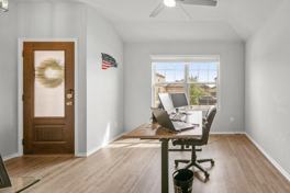 This beautiful one-story home offers a modern and comfortable layout with 3 bedrooms, 2 bathrooms, and a dedicated study/office. The open floor plan seamlessly connects the spacious living area to a stylish kitchen featuring granite countertops, a breakfast bar, and stainless steel appliances including a refrigerator, microwave, dishwasher, and garbage disposal. The primary suite boasts a double vanity, stand-in shower, garden tub, and walk-in closet for added luxury. Enjoy outdoor living with a covered patio and privacy-fenced backyard-perfect for relaxing or entertaining.
