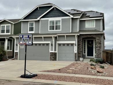 Beautiful 2story home with 5 beds, an office and a loft. Vaulted entry with wood floors throughout the main, office with french doors. The Great Room opens to a large gourmet kitchen with gas stove, granite countertops, walk in pantry, butler's pantry, 42 inch cabinets with brushed knickel hardware and a large island. The upper level has a great loft area for the kids or another office area, and four big bedrooms. The primary bedroom has an adjoining 5-piece bath and huge walk-in closet. The basement offers a large family room, an extra bedroom and a full bath. Enjoy the covered patio in your fenced backyard. 3 car garage! Close to schools, parks, shopping, entertainment and quick hop onto the Powers corridor to get to any base!