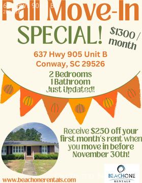637 Highway 905 #B is a 2 bedroom, 1 bathroom apartment for rent. It is located in Conway. It has apartment amenities including outdoor space, and in-unit laundry. Dogs are allowed, making it a pet-friendly apartment.