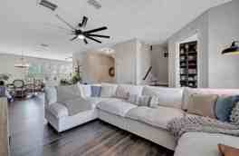 .Inside, you’ll find major updates focused on the main living areas: the second floor has been transformed with stylish luxury vinyl plank flooring, fresh paint, an updated kitchen, and refinished stairs that give the space a modern, fresh feel. The bright second-floor layout features 9-foot ceilings and an open-concept design, where the kitchen flows seamlessly into the dining and living areas. The kitchen boasts granite countertops, stainless steel appliances, an island, and ample pantry space—perfect for both entertaining and everyday life. Off the living room, a dedicated office/den with custom built-in shelving serves as a cozy library, creative nook, or remote work hub, with access to the balcony that overlooks a serene pond and fountain. The first floor includes a converted 4th bedroom with French doors, ideal for guests or a home gym. The third floor features a spacious primary suite with a tray ceiling, walk-in closet, and relaxing pond views. The en-suite bath includes a soaking tub, dual vanities, walk-in shower, and private toilet room. Two additional bedrooms, a full bath, and a laundry closet with washer and dryer complete the upstairs. This townhome also features a 2-car garage with extended driveway, a front porch, and peaceful conservation views from the back.