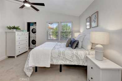 Welcome to the peaceful and secluded community of Los Portillos! This delightful 1-bedroom, 1-bathroom corner unit offers the perfect mix of comfort, convenience, and style. With no one above or below, you’ll enjoy a truly private living experience. Step inside to a light and bright interior featuring fresh paint, brand new carpet, recessed lighting, two ceiling fans, and newer dual-pane windows (2020) that enhance comfort and energy efficiency. The spacious primary bedroom includes a walk-in closet and a convenient stackable laundry closet. The bathroom was remodeled in 2023, complete with a new vanity, tub, and shower surround, creating a fresh modern feel. Relax outdoors on the large front balcony with gate, or take advantage of the oversized 1-car attached garage with additional storage. The community has been fully repiped for peace of mind and offers resort-style amenities, including a sparkling pool and spa. Nature lovers will appreciate being just steps from the O’Neill Regional Park Trail for hiking and biking adventures. You’re also within walking distance of shops, restaurants, and more. As a Rancho Santa Margarita resident, you’ll enjoy access to the RSM Lake, Beach Club, multiple parks, playgrounds, community pools, and sports courts. With top-rated schools nearby and easy access to the 241 Foothill Transportation Corridor, this home is both serene and convenient. Don’t miss your chance to own this charming home in one of South Orange County’s most desirable communities!
