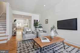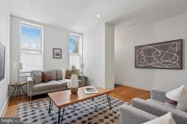 Welcome to 1740 Catharine Street, a beautifully renovated 3-bedroom, 2.5-bath townhome in the heart of Graduate Hospital. Located directly across from Marian Anderson Park and Pool, this home offers modern luxury, thoughtful design, and unbeatable convenience just steps from Center City Philadelphia. The first floor welcomes you with an inviting entry vestibule, leading into a sundrenched living room featuring hardwood floors, recessed lighting and large front windows. A convenient powder room adds functionality, while the open- concept kitchen impresses with Caesarstone countertops, custom cabinetry, a Bosch gas range plus oven with exterior-vented hood, and Fisher & Paykel French door refrigerator and dishwasher. The adjacent dining room offers a built-in banquette (custom dining set included!), large bay window, and oversized sliding glass doors that open to a private rear patio. On the second level you'll find two spacious bedrooms, each with ceiling fan and ample closet space. The hallway includes a built-in desk, custom linen cabinets and a large laundry room with storage and shelving. The hall bathroom is a serene retreat with a double vanity, frameless glass shower, private water closet, and radiant heated floors. The third floor is a true primary suite level! The widened hallway includes a walk-in closet and an additional double closet, leading to a bright and spacious primary bedroom featuring recessed lighting, ceiling fan, and dramatic skyline views. The luxurious en-suite bathroom features a frameless glass shower with deep soaking tub, custom vanity, and heated floors. This level includes an additional private flex space, with sliding doors leading to a southern facing private balcony. This room is perfect for an en suite home office, nursery, or den fit for morning coffee or evening drink! The basement is unfinished with ample storage and utility sink. Enjoy easy living with wonderful day-to-day flow, sweeping Center City skyline views and in a walkable location near parks, dining, shopping, public transportation, and much more. Don't miss your chance to own this stunning, must-see home in one of Philadelphia's most desirable neighborhoods!