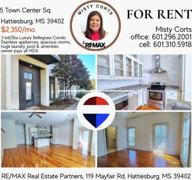 | Professionally Managed By: Misty Corts, Broker Associate with RE/MAX Real Estate Partners | mobile: 601.310.5918 | office: 601.296.2001 | www HattiesburgRentals com | 119 Mayfair Rd Hattiesburg, MS 39402.