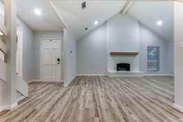 Welcome to this beautifully updated, move-in-ready home that perfectly blends modern design with comfortable living. The heart of the home features an open-concept layout that seamlessly connects the kitchen, dining, and family room, creating a natural flow that’s both functional and inviting. The main living room features vaulted ceilings and a stunning white brick fireplace, a perfect focal point for gatherings and everyday living. The well-appointed eat-in kitchen offers ample storage and counter space, featuring SS appliances, granite countertops, subway tile backsplash, open shelving, and a separate wall of accent cabinetry that provides additional storage and a dedicated coffee bar area. The dining area flows seamlessly from the kitchen and overlooks the backyard through large sliding doors, perfect for everyday meals or entertaining guests.