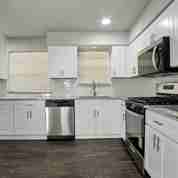 Stunning remodeled 3-bedroom home featuring an open living area and easy-care vinyl plank floors throughout. Enjoy modern light fixtures, marble showers, and ceiling fans in every room. The kitchen shines with pearly white cabinets, stainless-steel sink, dishwasher, microwave and gas stove range. Full-sized Washer and dryer connections available. Outside, take advantage of a personal driveway for off-street parking and a private fenced yard for outdoor enjoyment. Stylish, functional, and move-in ready!