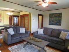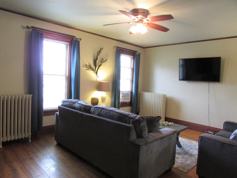 Fully furnished and available Nov. 7th, for month-to-month rental. This spacious one bedroom, 1 bath apartment is on the upper level of a 4-plex. Natural light, hardwood floors, and extra closet space. A large living room with sofa, love seat, coffee table, desk, Smart TV, formal dining room with seating for 4 and a closet with French doors. The kitchen features, original cast iron wall mount kitchen sink with drainboard, oak cabinets, glass top electric stove, refrigerator, microwave, butcher block counter tops, pantry and all kitchen wares. The bedroom has a closet, queen bed and all the linens are included. Spacious bath with a tub/shower, and towels are provided. No Smoking, No Pets, street parking, coin-op laundry in the basement. Included: Lawn Care, Snow Removal, all utilities, sewage, garbage, recycling, and WiFi. Rent: $1,675.00 Security Deposit: $500.00