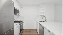 The apartment features a brand new renovated kitchen with stainless steel appliances, marble countertops, dishwasher, breakfast bar, and great cabinet space. There are new hardwood floors throughout. The bedroom is very spacious with tons of closet space, and can easily fit a king sized bed. The marble bathroom is also newly renovated. This apartment also has a tremendous amount of closet space and light, and there is laundry right on the floor.