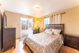 Private furnished Master bedroom with adjustable queen bed and a mini living room/wet bar.