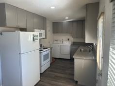 Fully remodeled 2 bedroom 1 bathroom duplex unit with single car garage. ALL NEW quartz countertops, cabinets, washer & dryer, air conditioning, window coverings, fresh paint, and plank vinyl flooring. Large open living room, dining area, and hallway linen closet.