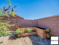 This 2022 corner lot home has mountain and sunset views, three bedrooms, two baths, a custom coffee bar with seating, a kitchen with a walk-in pantry with an outlet for appliances, and an island with extra cabinets. All rooms have upgraded ceiling fans, lighting, tile & carpet flooring, and custom window treatments.